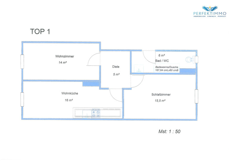 Top 1 – ca. 56,5 m², Erdgeschoss, 2 Zimmer, wird neu vermietet
