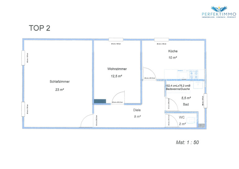 Top 2 – ca. 62 m², Erdgeschoss, 2 Zimmer, langfristig vermietet