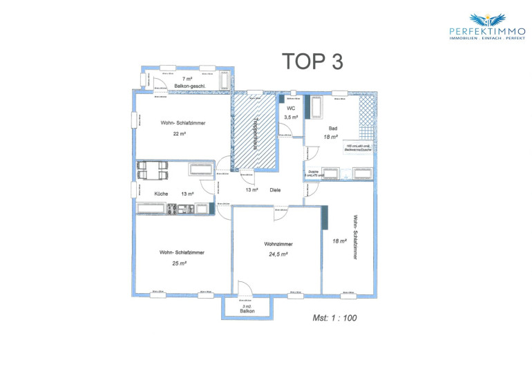Top 3 – ca. 144 m², 1. Obergeschoss, 4 Zimmer, + ca. 3 m² Außenfläche, langfristig vermietet
