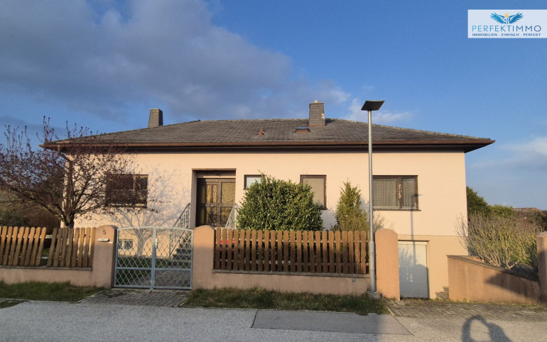 Der eingeschoßige Bungalow ist über 2 Treppen zugänglich, vom Haupteingang von der Straße, sowie von einem Nebeneingang am hinteren Teil des Hauses über die Terrasse. Die Räume sind über das geräumige Vorzimmer zentral begehbar. Das großzügige Wohnzimmer mit angeschlossener Küche bietet einen wunderbaren Wohnraum und Treffpunkt für die ganze Familie. Die 3 Zimmer an der anderen Seite verfügen über viel Platz.