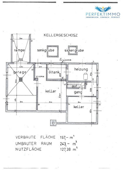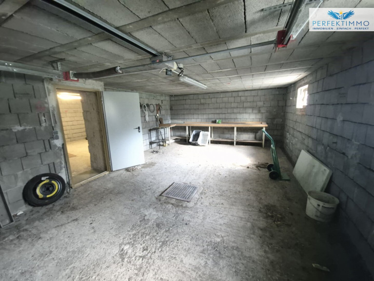 Der Keller ist nicht ausgebaut, bietet aber, aufgrund der Unterkellerung des gesamten Hauses sehr viel Raum. Die praktische, geräumige, Garage (ca 37m²) mit Rolltor ist über eine Rampe (etwas steil) von der Straße befahrbar.
