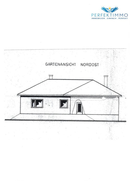 Das Einfamilienhaus in eingeschoßiger Bungalow-Bauform wurde ca. 1980 errichtet. Es befindet sich auf einem großen Grundstück mit ca. 767 m² in Ruhelage, mit einem unverbauten Blick auf die Felder in Richtung Nordosten.
