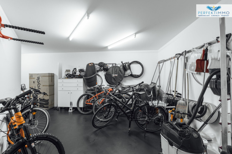 Im Keller finden sich teils tageslichtdurchflutete Räume mit Wohnraumausbau, Fußbodenheizung und Natursteinboden. Ein separater Keller mit extra breitem Zugang bietet Platz für Fahrräder oder Motorräder.