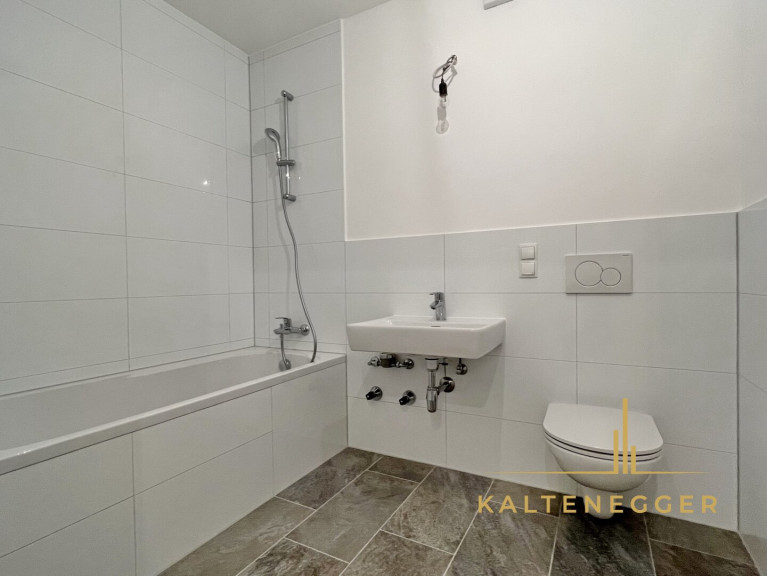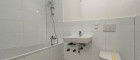 - Badezimmer mit Badewanne, WC, Handwaschbecken und Handtuchtrockner