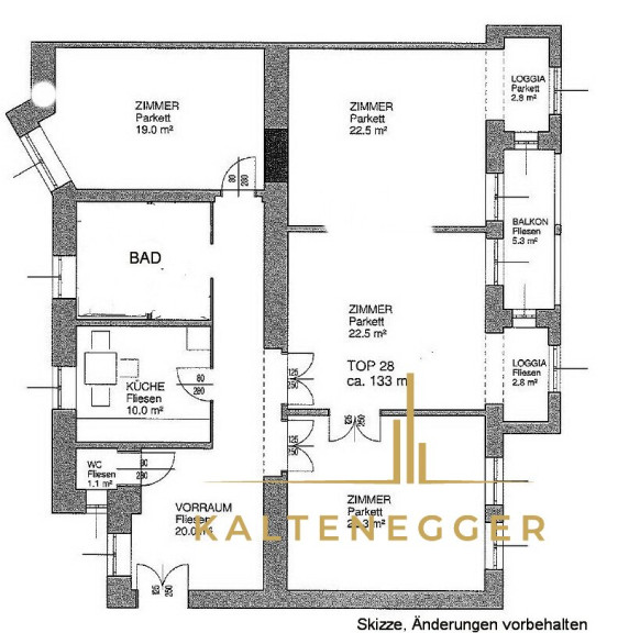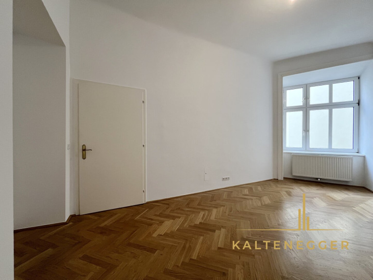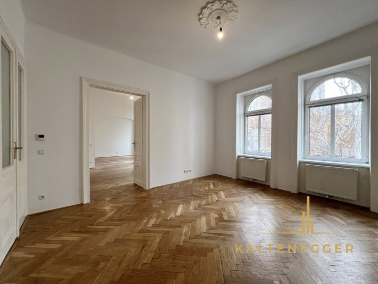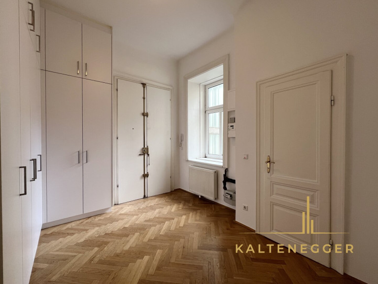 Stilvolle Altbauelemente wie hohe Räume, Flügeltüren und klassische Parkettböden verleihen dem Objekt den typischen Wiener Altbaucharakter.