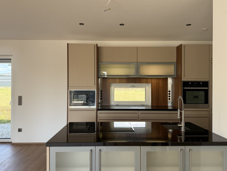 Wohnküche / offene Küche, Einbauküche, Bad mit Fenster, Badewanne, Dusche, Garage, Alarmanlage