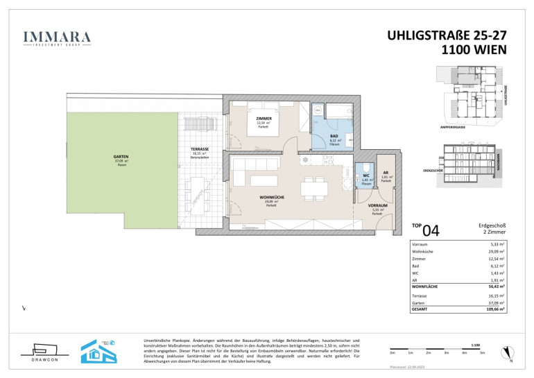 Dieses schöne Neubauprojekt befindet sich in der Uhligstraße, einer sehr ruhigen und begrünten Straße zwischen Oberlaaer Straße und der Ampferergasse. Der Kurpark Oberlaa ist in ca. 15 Minuten fußläufig zu erreichen.