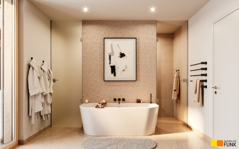 Dieses großzügige Appartement liegt im Obergeschoss des linken der drei Häuser und bietet Ihnen eine Wohnfläche von ca. 167 m². Sie betreten die Wohnung über einen Vorraum, der ausreichend Platz für die Garderobe bietet. Rechter Hand des Vorraums erwarten Sie zwei Schlafzimmer, ein Bad mit Dusche, WC und Handwaschbecken sowie der Technik- und Wirtschaftsraum und die Gästetoilette. Linker Hand des Vorraums gelangen Sie zum Masterbedroom mit Garderobe und en-Suite Bad, ausgestattet mit Dusche, Wanne, WC und Doppelwaschtisch. Vor dem Wohnbereich öffnet sich der Gang mit Schiebetür zu einem Balkon mit ca. 7 m² Fläche. Anschließend daran bietet Ihnen die ca. 52 m² große Wohnküche mit Zugang zu einem ca. 15 m² großen Balkon eine herrliche Aussicht auf den Neufelder See. Eine private Stiege führt Sie vom Wohnbereich über einen kurzen Gartenweg direkt zum See.