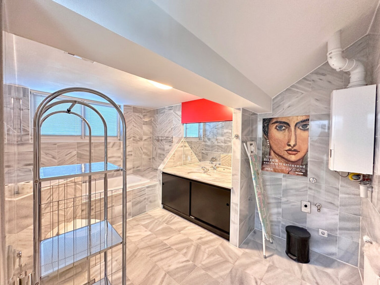 Geräumiges Badezimmer sowie ein zusätzliches WC