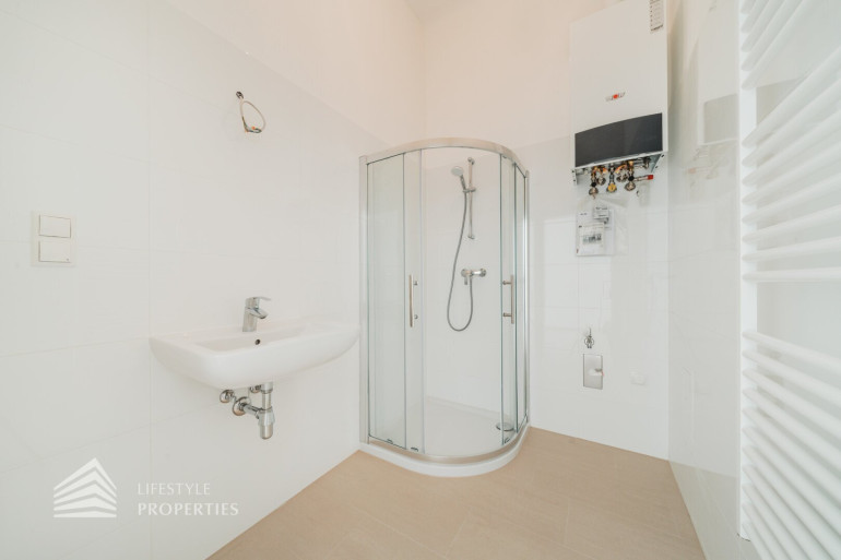 Nach Betreten des Objekts befinden Sie sich im großzügigen Vorraum mit einer Größe von ca. 11,63 m², mit einem Fenster zum Hof versehen. Von hier gelangen Sie einerseits in die separate Toilette, die Küche, welche ebenso mit einem Fenster zum Innenhof versehen ist, und andererseits ins Badezimmer mit einer Duschkabine. Sowohl der Vorraum als auch die Küche und das Bad sind verfliest. Des Weiteren gelangen Sie vom Vorzimmer ins Wohnzimmer mit ca. 32,67 m², welches durch zwei Fenster mit ausreichend Tageslicht erhellt wird. Hier herrscht genügend Platz für eine Essecke sowie eine gemütliche Couchlandschaft. Vom Wohnzimmer kommen Sie in das Trapezförmige Schlafzimmer mit einer Größe von ca. 17 m² und zwei hofseitigen Fenstern, welche ruhige Nächte versprechen. Beide Wohnräume sind mit hochwertigen Parkettboden ausgestattet.