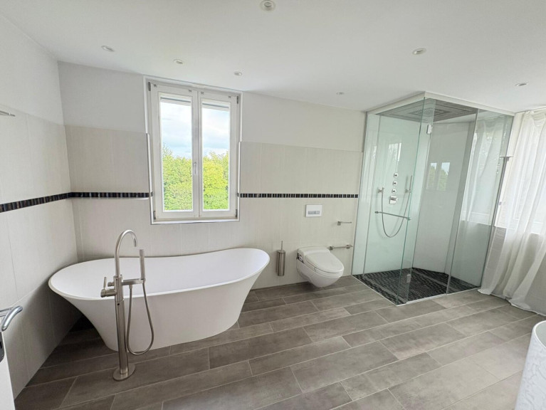 - 5 stilvolle Badezimmer sowie eine exklusive Dampfsauna mit separater Dusche im Kellerbereich.