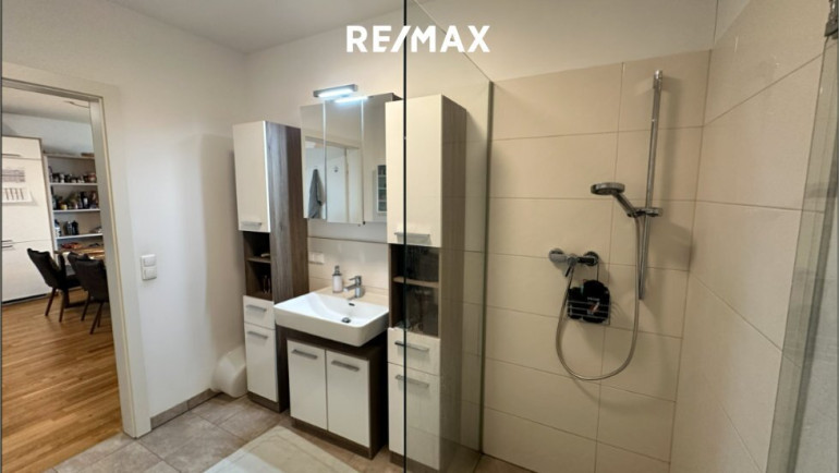 Der Grundriss überzeugt durch einen großzügigen Wohn- und Essbereich mit viel Tageslicht. Eine dezentrale Wohnraumlüftung mit Wärmerückgewinnung im Wohnzimmer sorgt für ein angenehmes und energieeffizientes Raumklima. Ein besonderes Highlight ist der große Balkon mit Fernblick, der zusätzlichen Wohnkomfort bietet.