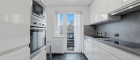 Die moderne Küche bietet alles um leckere Gerichte zu kochen. Die großen Fenster lassen viel Tageslicht herein und schaffen eine helle, freundliche Umgebung.