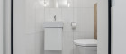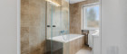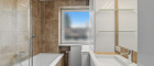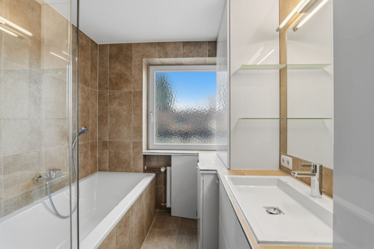 Das Badezimmer ist mit einem Fenster ausgestattet, was nicht nur für eine optimale Belüftung sorgt, sondern auch eine angenehme Atmosphäre schafft. Hier finden Sie sowohl eine entspannende Badewanne als auch eine praktische Dusche – ideal für jeden Lebensstil.