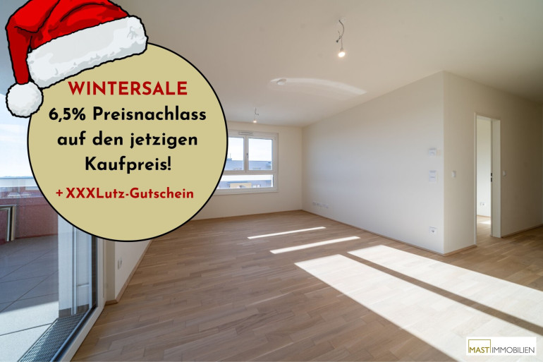 In der kalten Jahreszeit lassen wir die Preise schmelzen: Beim Kauf einer Eigentumswohnung in einem unserer Objekte in der Berresgasse ersparst du dir bis 31.3.2026 die Nebenkosten* und bekommst so jede Wohnung um 6,5% günstiger.