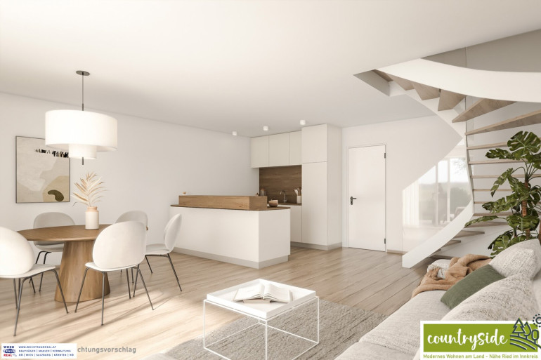 Die Doppelhaushälfte befindet sich in der idyllischen Gemeinde Gries, ca. 10 Minuten von der Stadt Ried im Innkreis entfernt. Das Haus liegt in einer ruhigen Wohngegend und ist von viel Grün umgeben. Die Umgebung bietet eine ländliche Atmosphäre mit vielen Feldern und Wiesen. Die nächstgelegene Autobahn ist die A8, die in ca. 15 Minuten zu erreichen ist. Einkaufsmöglichkeiten, Schulen und öffentliche Verkehrsmittel sind in der Nähe vorhanden.