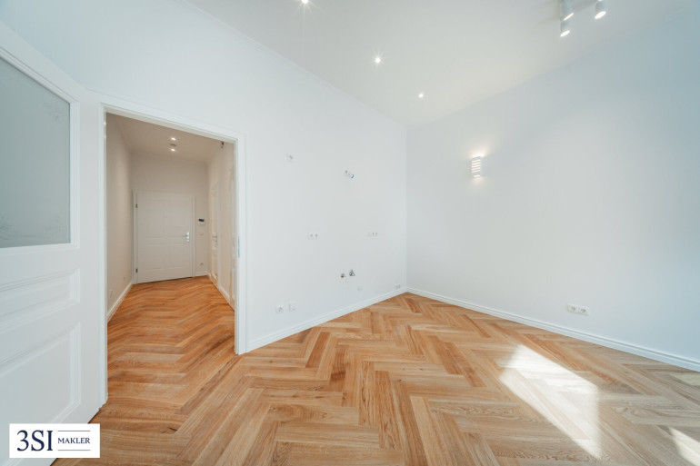 Zum Verkauf gelangt eine 2-Zimmer Altbauwohnung im 1. Stock. Die Stilaltbau-Wohnung befindet sich im gebrauchten Zustand und kann auf Wunsch nach Ihren individuellen Wünschen saniert werden. Die angezeigten Beispielbilder spiegeln den Zustand nach einer vollumfänglichen Sanierung entsprechend höchster 3SI-Qualitäts-Standards wieder. Diese enthalten beispielsweise Fischgrät-Eichenparkett und stilvolle Kassettentüren, eleganten Deckenstuck und feine Vertäfelungen sowie moderne Elemente wie Fußbodenheizung und mehrfach verglaste Kunststofffenster. Diese ansprechende Wohneinheit überzeugt mit einem durchdachten Grundriss und einer absoluten Ruhelage in den begrünten Innenhof. Die Aufteilung ist wie folgt: