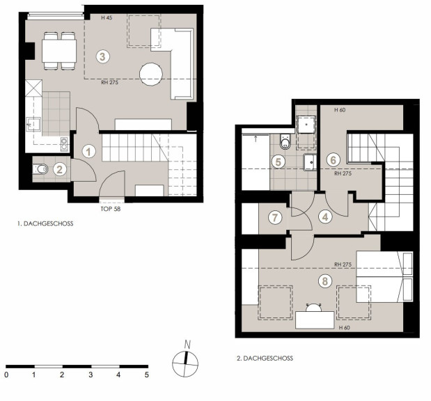 Schöne klimatisierte 2 Zimmer Maisonettewohnung im Dachgeschoß