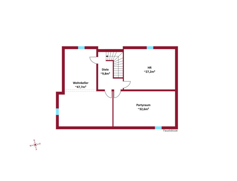 Im Kellergeschoss stehen Ihnen zurzeit 3 separate Räume zur Verfügung, die durch eine angepasste Raumtrennung individuell gestaltet werden können.