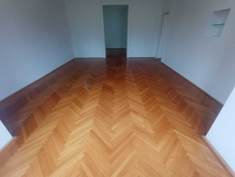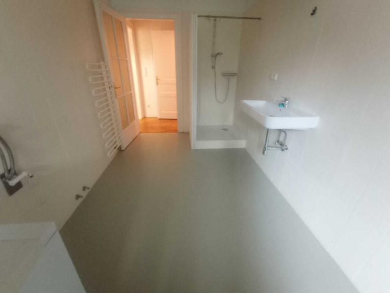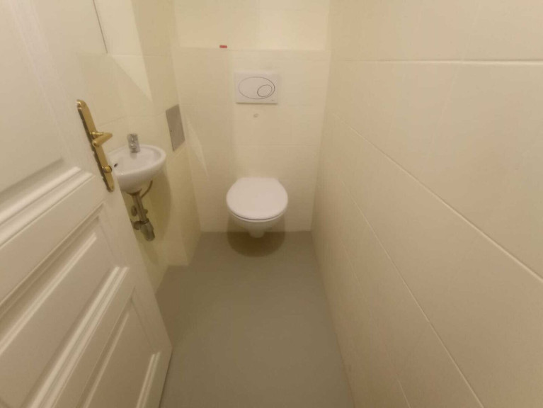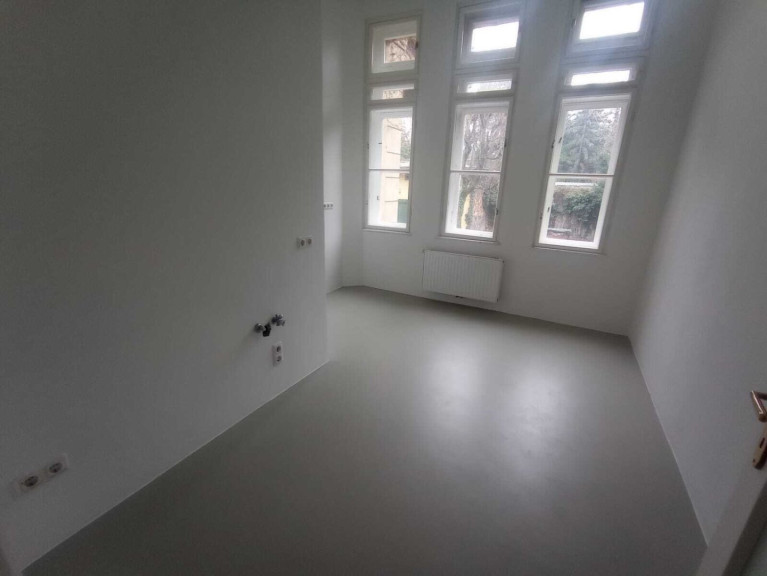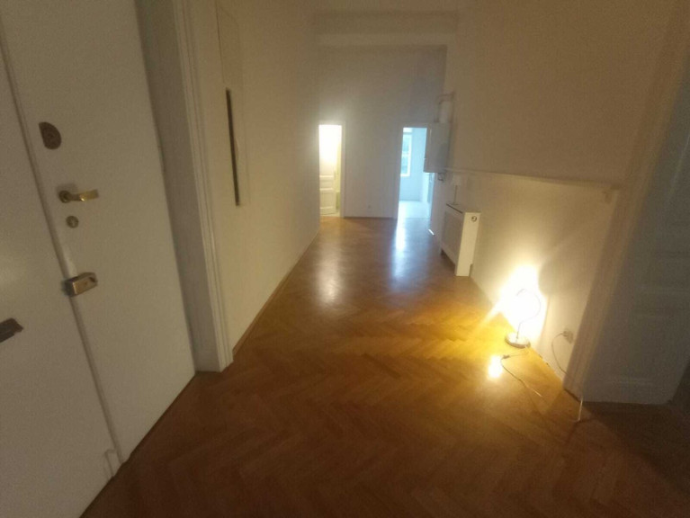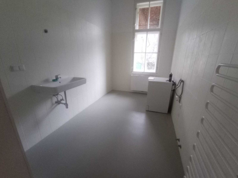 Die Wohnung besteht aus 5 Zimmern, einer Küche, Bad (mit Dusche, Waschbecken, Bidet und Waschmaschinenanschluss), zwei Toiletten und ein sehr geräumiges Vorzimmer. Die Küche ist nicht eingerichtet, die Eigentümer würden sich in Form einer Mietfreistellung an der Einrichtung einer Küchenzeile beteiligen. Beheizt wird die Wohnung mittels einer Gasetagenheizung.
