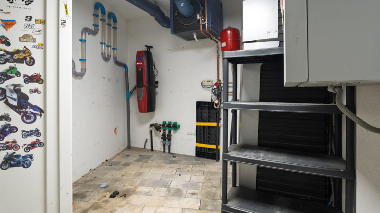 Die Beheizung und Warmwasseraufbereitung erfolgt mittels Luftwärmepumpe per Fußbodenheizung