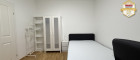 The rooms are modernly furnished as in the photos (double bed, wardrobe, desk, chest of drawers, bookshelf...). The kitchen is equipped with a dishwasher, fridge/freezer, sink and a ceramic hob with oven. A washing machine is provided in the bathroom.