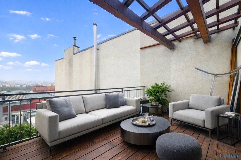 Ein besonderes Highlight dieser Etage stellt die großzügige Dachterrasse dar. Sie bietet einen beeindruckenden Ausblick und lädt dazu ein, den urbanen Raum aus einer privaten Perspektive zu genießen – ideal für entspannte Stunden im Freien.