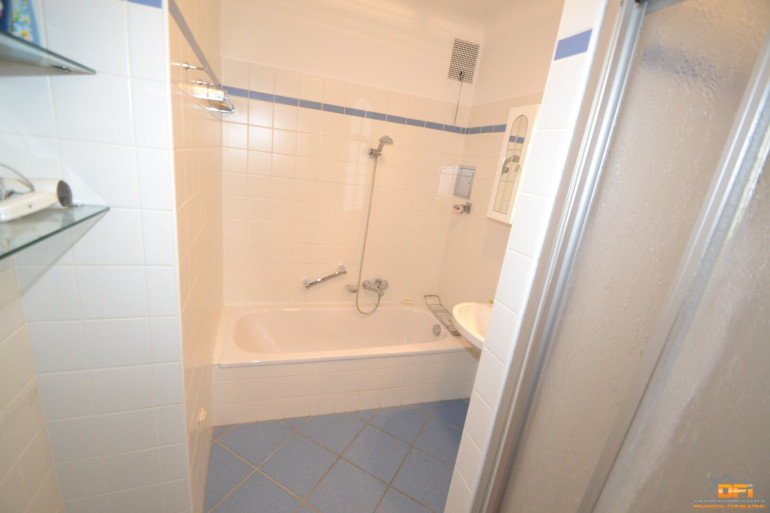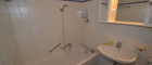 Bad: Das freundlich verflieste Badezimmer ist mit Badewanne UND Dusche sowie einem Handwaschbecken ausgestattet.