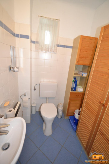 WC: Das WC ist ebenfalls vom Vorraum aus zu begehen und ansprechend verfliest. Es verfügt außerdem über ein kleines Fenster und ist mit Kästen als Stauraum ausgestattet.