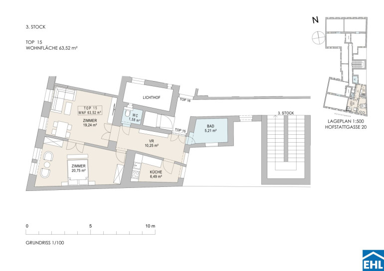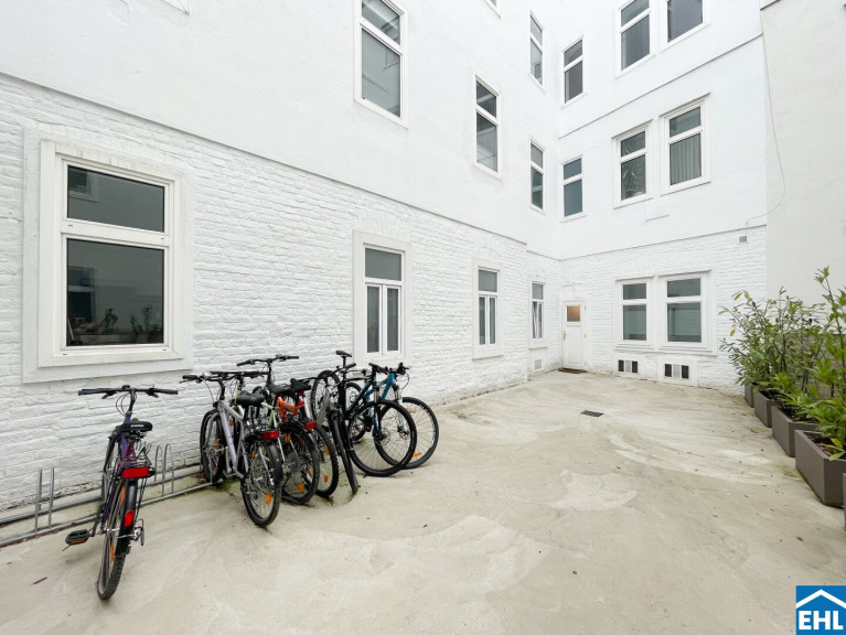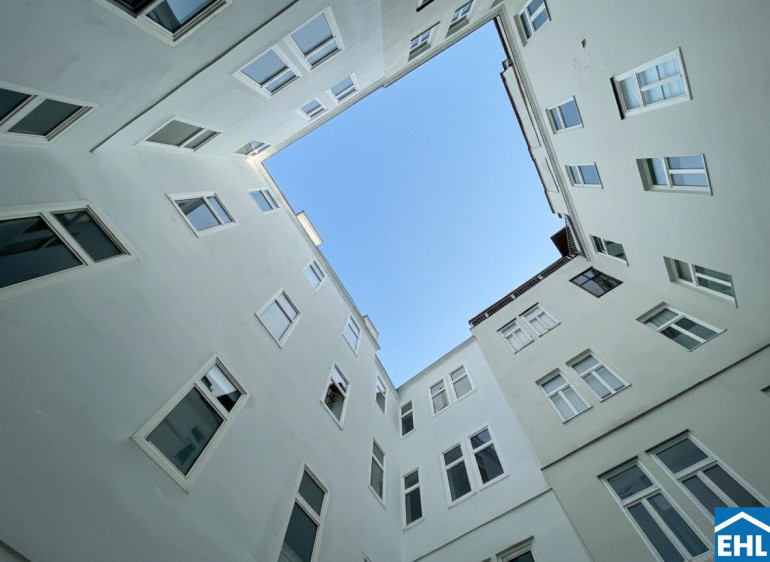 Zusätzlich zu dem gepflegten Innenhof und einem Kellerbateil je Wohnung wird außerdem ein Lift vertraglich zugesichert, dessen Errichtung innerhalb der kommenden drei Jahre erfolgen wird – ein wertvoller Gewinn für das gesamte Gebäude.