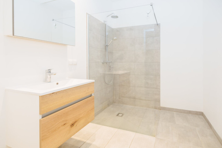 Edle Ausstattung, bodenebene Dusche und ein klares Design – perfekt für stilbewusste Eigentümer:innen.