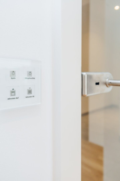 Intelligente Steuerung von Beleuchtung, Jalousien, Raumklima und Türöffnung bequem per App – für maximale Effizienz und Wohnkomfort.