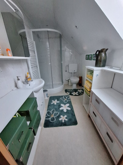 - im Obergeschoss: Küche, Badezimmer, WC, drei Zimmer