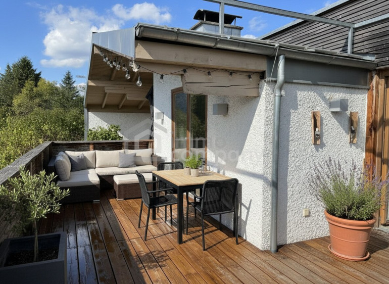 - Sonnige Terrasse und Garten mit Panoramablick.