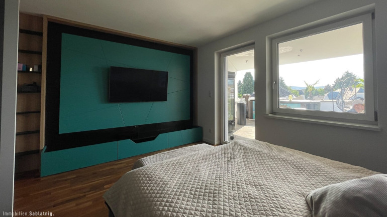 Der lichtdurchflutete Wohn- und Essbereich mit eleganter Lounge und edler Designerküche bildet das Herzstück. Hier verschmelzen Offenheit und Stil zu einem perfekten Ort für Genuss und Begegnung. Zwei Schlafzimmer, ein großzügiges Ankleidezimmer sowie ein luxuriöses Badezimmer in Marmoroptik mit direktem Zugang zum privaten Saunabereich machen diesen Rückzugsort einzigartig.