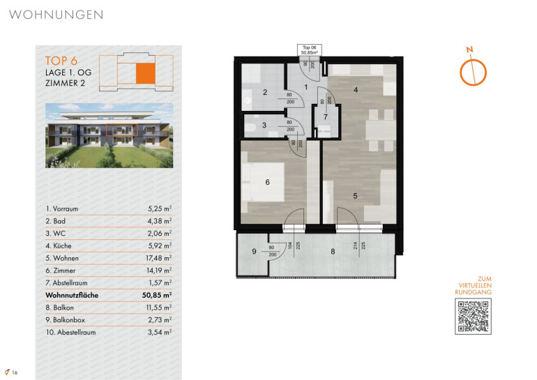 Diese 2-Zimmer-Eigentumswohnung im 1. Obergeschoss verfügt über eine Wohnfläche von ca. 50,85 m² sowie einen Balkon mit ca. 11,55 m².