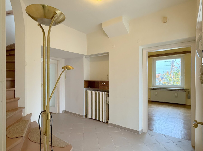 Stufe für Stufe lässt man die Straße hinter sich, bis man im Garten steht. Gesamt ca. 503 m², eben, sonnig und vor allem still. Ein Vorgarten zum Wachküssen und noch ein paar Stiegen hinauf – dann steht man bereits vor der Türe. Ein Windfang trennt noch schnell zwischen Allwetter und Geborgenheit, ein kurzes Innehalten, bevor das Haus seine Geschichte öffnet.