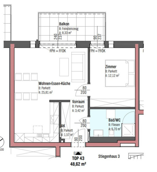 Mit einer großzügigen Fläche von 48,62 m² verteilt auf zwei lichtdurchflutete Zimmer, ist diese Wohnung der ideale Rückzugsort für Singles oder Paare. Die offene Wohnküche lädt zu geselligen Kochabenden mit Freunden oder entspannten Stunden mit der Familie ein. Hier können Sie Ihre kulinarischen Fähigkeiten entfalten und sich in einer gemütlichen Atmosphäre verwöhnen lassen.