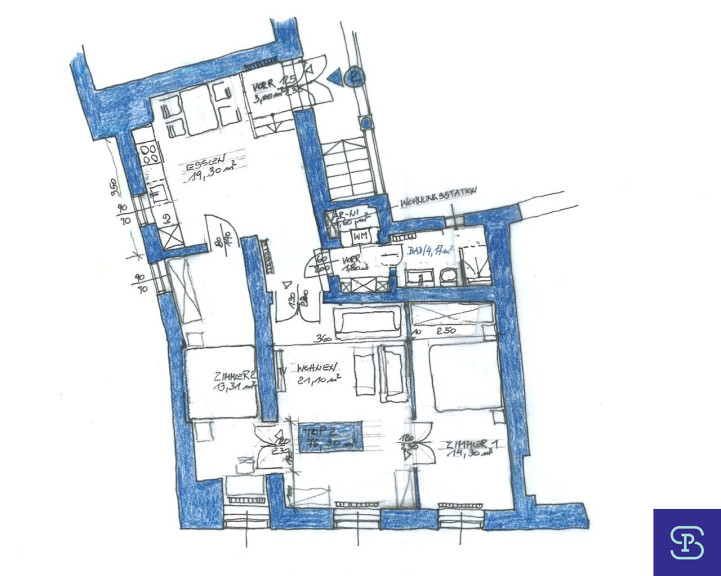 Gesamtmiete inkl. Bk und 10% USt. € 1.299,-