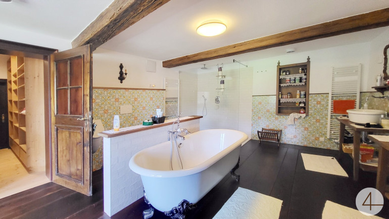 Das Gebäude bietet mehrere Apartments (Langzeitvermietung von einzelnen Apartments möglich), eine Jagdherren-Suite sowie kleinere getrennte Wohneinheiten. Jede Wohnung verfügt über ein eigenes Bad und ist überdies mit ausgesuchten, beeindruckenden Antiquitäten liebevoll eingerichtet. Das Herrenhaus wird voll möbliert mit allen Antiquitäten abgegeben. Eine gastromäßig ausgestattete Küche lässt jeden Hobbykoch zum Profi werden, im großen Saal werden Sie und Ihre Party-Gäste unvergessliche Tage erleben. Im Wellnessbereich (Sauna, Hamam, Whirlpool) halten Sie sich fit, Ihre Gäste schwimmen inzwischen im Pool.