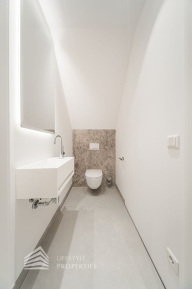 Die Wohnung überzeugt durch ihre hochwertige Ausführung mit edlen Parkettböden in den Wohn- und Schlafräumen, stilvollen Oberflächen in den Nassbereichen und einer Architektur, die den historischen Charakter der Jahrhundertwende Villa bewahrt und zugleich modernen Wohnansprüchen gerecht wird.
