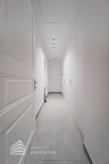 Rechter Hand befindet sich der private Rückzugsbereich mit insgesamt drei großzügigen Schlafräumen, die jeweils höchsten Wohnkomfort bieten. Das Master-Bedroom begeistert mit einer Fläche von rund 23 m², einer separaten Ankleide von etwa 8 m² sowie einem luxuriösen Badezimmer en suite. Dieses überzeugt mit einer freistehenden Badewanne, einer großzügigen Dusche, WC und einem stilvollen Doppelwaschbecken – ein privates Spa-Refugium im eigenen Zuhause.