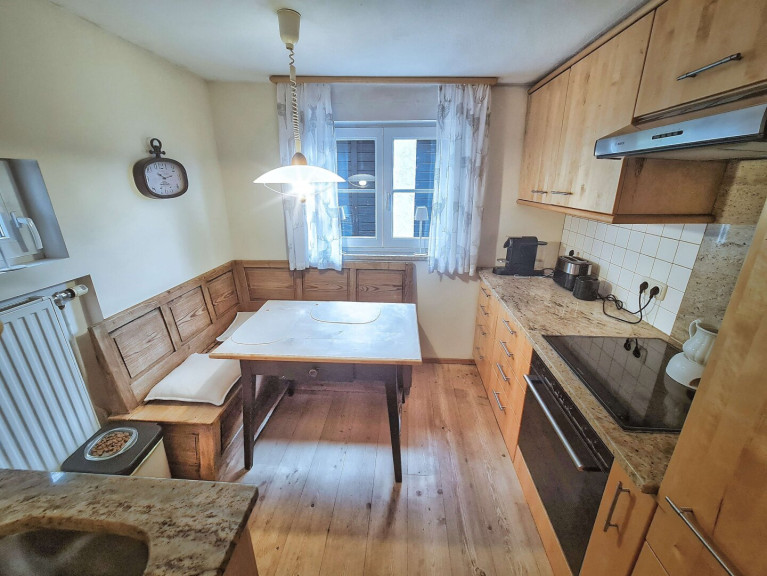Fliesen, Parkett, Öl, Kamin, Zentralheizung, Einbauküche, Südbalkon, Bad mit Fenster, Badewanne, Kabel/Satelliten-TV, Garage