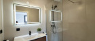 Auf der unteren Ebene befindet sich ein ruhiges Schlafzimmer mit elegantem En-suite-Bad sowie ein separates WC. Großzügige Zimmergrößen, helle Oberflächen und moderne Haustechnik sorgen für ein stilvolles und komfortables Ambiente. Ein zweites Zimmer – ideal als Schlafzimmer, Home-Office oder Gästezimmer – macht die Wohnung vielseitig nutzbar.