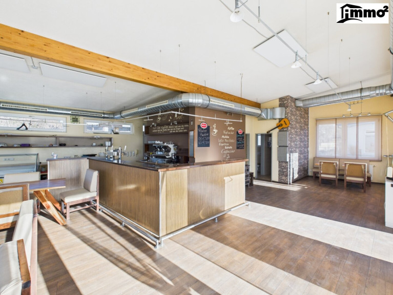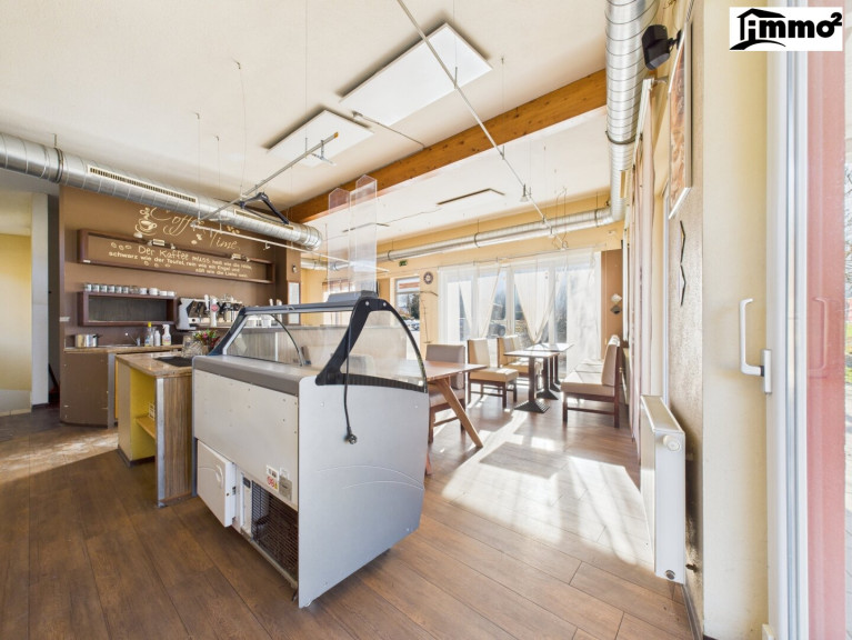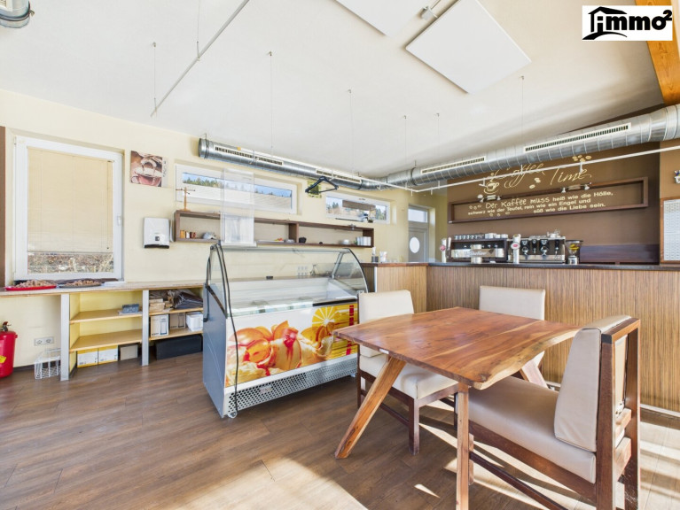 Die vorhandene Einrichtung – Kaffeemaschine, Kuchen- und Eisvitrine, Barbereich – ermöglicht einen sofortigen Start, während die flexible Küche Ihnen die Freiheit gibt, Ihr Konzept individuell umzusetzen.