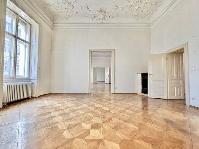 Dieses Domizil besticht einerseits durch seine hohen Stuckdecken, Flügeltüren und einer kleinen Terrasse in den Lichthof gerichtet, sowie seiner Lage.