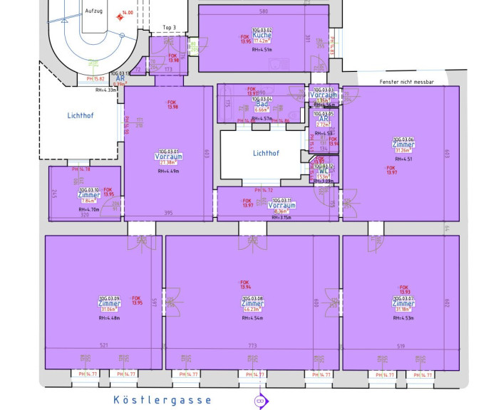- Wohnküche in den Lichthof gerichtet