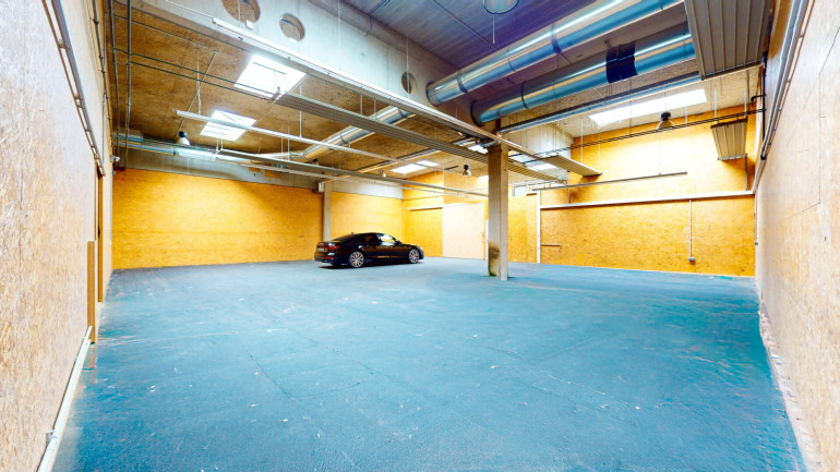Die effektive Nutzungshöhe wird durch Heizungen und Leitungen auf ca. 3,84 m begrenzt, dazwischen bleibt jedoch ausreichend Raum, um beispielsweise höhere Regale, Zwischenkonstruktionen oder Einbauten zu realisieren. Damit eignet sich die Halle nicht nur als klassische Lagerfläche, sondern auch als Produktionshalle, Werkstatt oder Showroom. Das Objekt ist ebenerdig zugänglich und über ein Sektionaltor mit ca. 3,0 m x 3,1 m (H x B) sowie eine danebenliegende normale Eingangstür (ca. 0,9 m x 2,0 m) erreichbar.