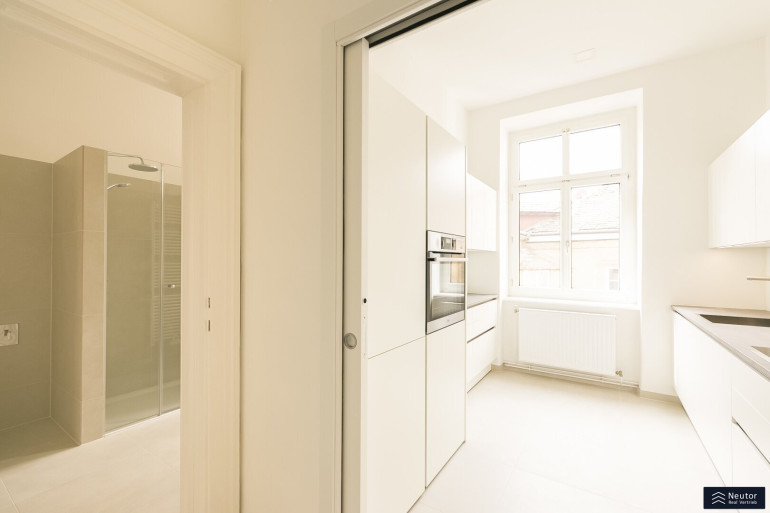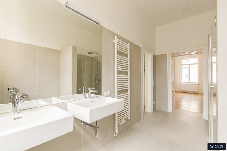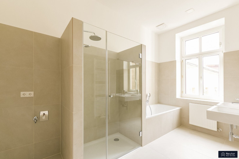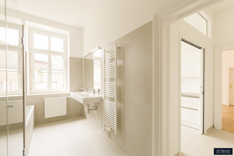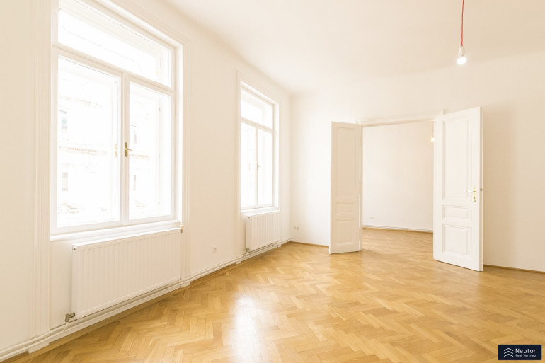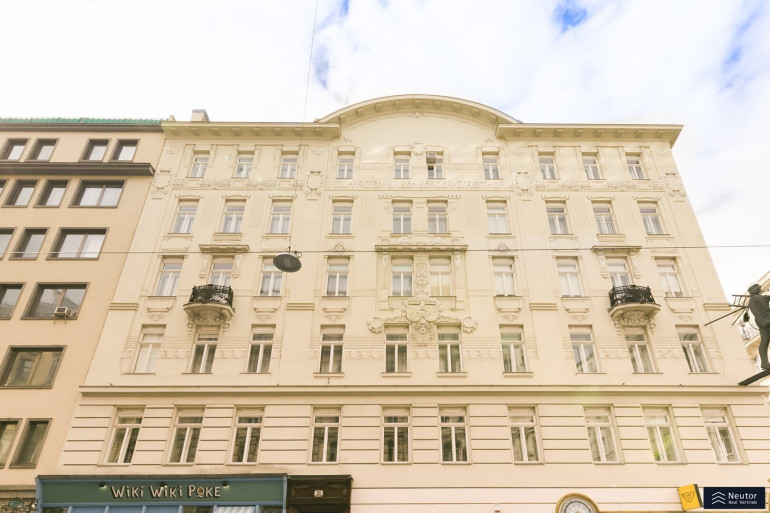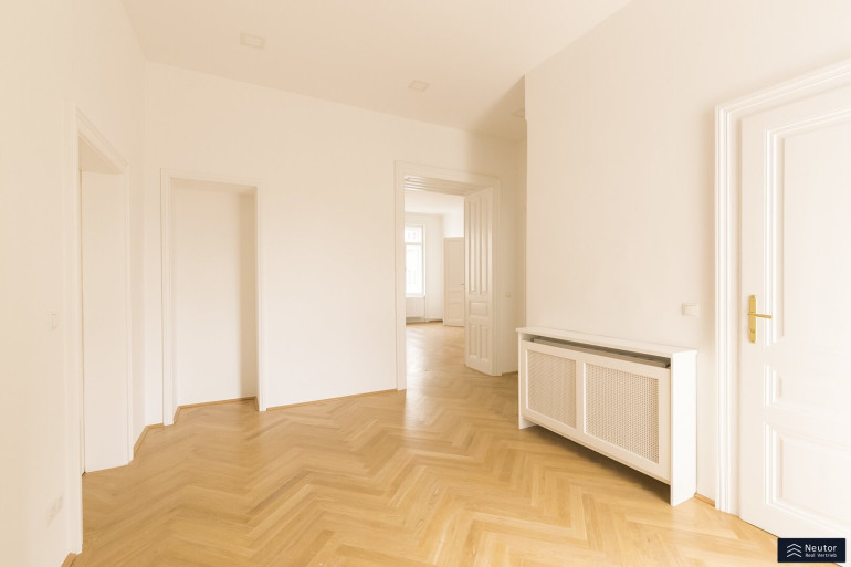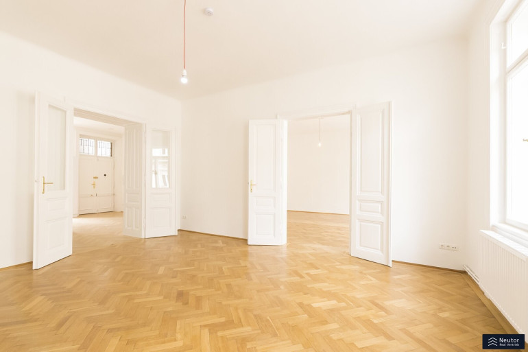 Das Staunen beginnt bei diesem Stilaltbau bereits vor der reich gegliederten Fassade und dem repräsentativen Eingangsbereich, welcher sich im wunderschönen Originalzustand präsentiert. Bequem gelangen Sie per Lift in das 3. Regelgeschoss, von welchem aus Sie nur mehr wenige Schritte von der großzügigen 4-Zimmerwohnung trennen. Die Wohnung wurdevor wenigen Jahren aufwendig teilsaniert und revitalisiert und besticht durch edlen Fischgrätparkett, welcher nahtlos durch die Räume verlegt ist, Kassettentüren, hohe Räume, alles Stilelemente was einen schönen Altbau ausmachen. Sie betreten Ihre neue Wohnung über einen großzügigen Vorraum, welcher ausreichend Platz für eine Garderobe bietet. Von diesem aus gelangen Sie unkompliziert auf den Balkon, welcher in den himmlisch ruhigen Innenhof gerichtet wurde. Ebenso erreichen Sie das separate WC sowie 4 weitere Zimmer, welche sehr großzügig angelegt wurden und tagsüber mit viel Licht punkten können. Die Einbauküche wurde separat angelegt und lädt förmlich zum Kochen ein. Diese wurde mit Marken-Geräten ausgestattet und kann ebenso mit einem Fenster überzeugen. Das Badezimmer wurde dahinter angelegt und bietet eine edle Walk-In Dusche und eine großzügige Badewanne, welche einen entspannten Abend garantiert. Zusätzlich kann das Badezimmer mit Doppelwaschbecken, Waschmaschinenanschluss sowie mit einem Fenster punkten. Vom Badezimmer aus erreichen Sie eines der 4 Zimmer, wodurch es zu einem en-Suite Badezimmer wird. Eine tolle Wohnung in bestens angebundener Lage!