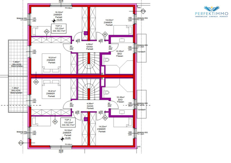 Der obere Wohnbereich besticht durch drei hervorragend proportionierte Schlafzimmer, die vielseitig nutzbar sind. Das moderne Badezimmer und der Balkon schaffen zusätzlichen Komfort und Raum für entspannte Momente.